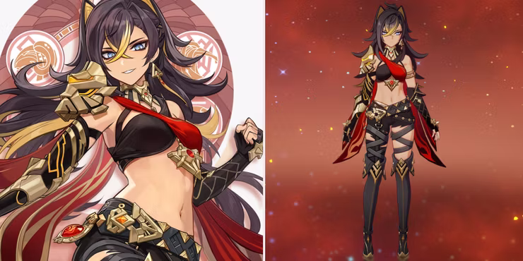 Dehya est membre des Emerites, une organisation mercenaire sumeru. Elle est considérée comme courageuse, forte et juste. Elle défendra ceux qui l’embauchent et a également un côté compatissant que nous avons vu dans son histoire et ses interactions avec Dunyarzad.
